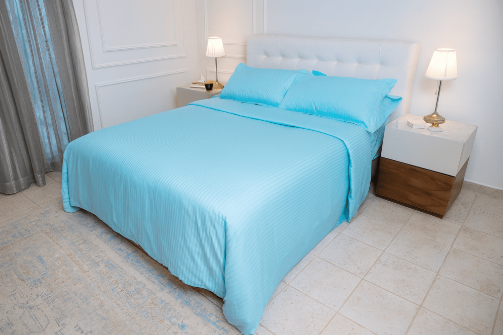 طقم سرير الأناقة تركواز- مقلم سادة